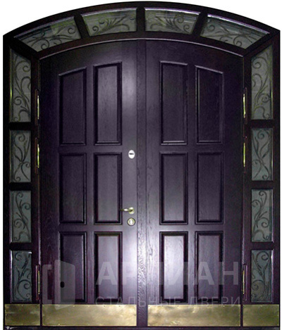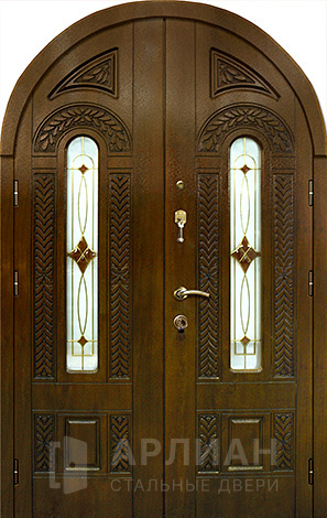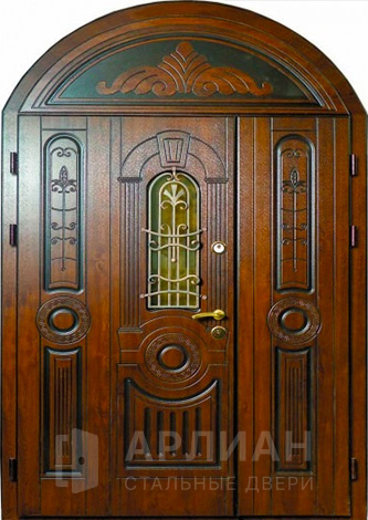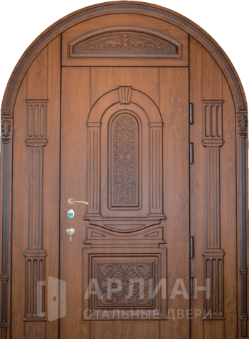 Арочная двустворчатая стальная дверь для загородного дома №125