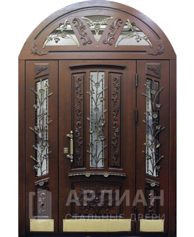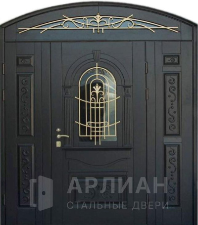 С ковкой стальная арочная дверь в частный дом №91