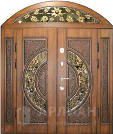 Входная арочная дверь со стеклянными вставками №49