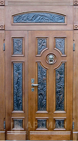 Металлическая входная дверь в коттедж с верхней фрамугой №10