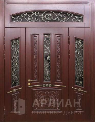 Металлическая входная дверь в коттедж с верхней фрамугой №10
